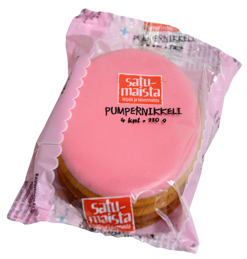 Kas, tässä näette maalaisuuteni. Pumpernikkeli on muistoja lapsuudesta. Ne ihanat soikean malliset piparkakut pinkillä sokerikuorrutteella - nam! Vielä aikuisenakin niitä ostan ja ovat mielestäni kalliita. Myös tuo nimi - Pumpernikkeli- on siis vekkulia suomen kieltä jos näin voi sanoa.